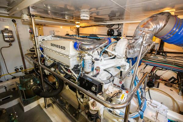 - Key Power Hydraulic Bow and stern thrusters are 3 station-25 HP.